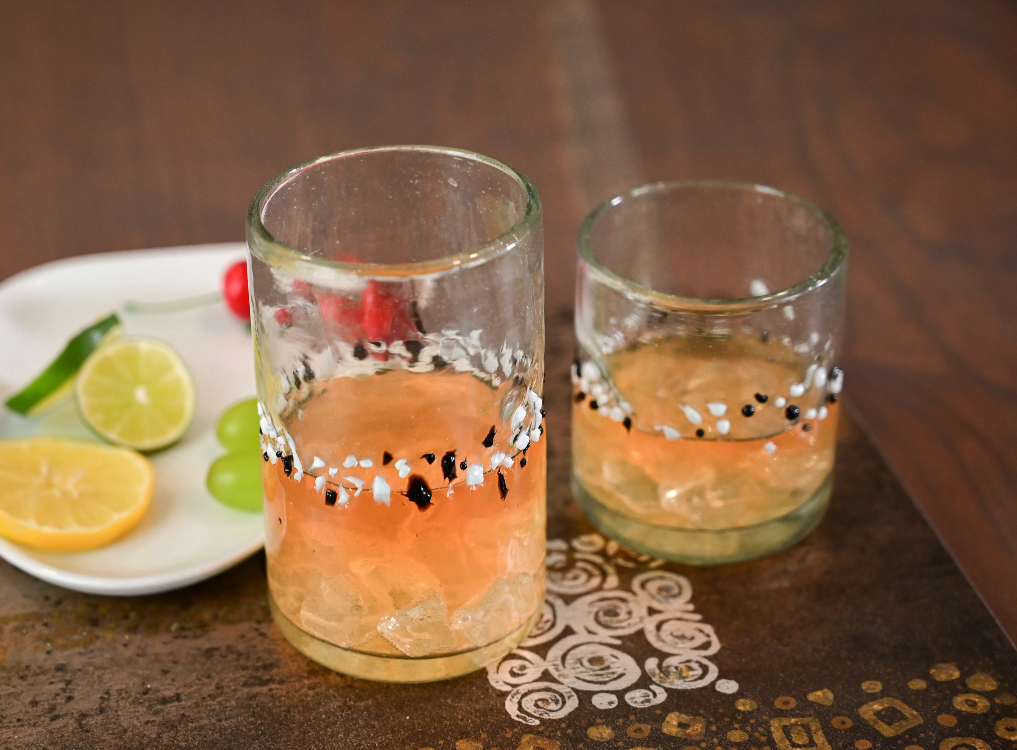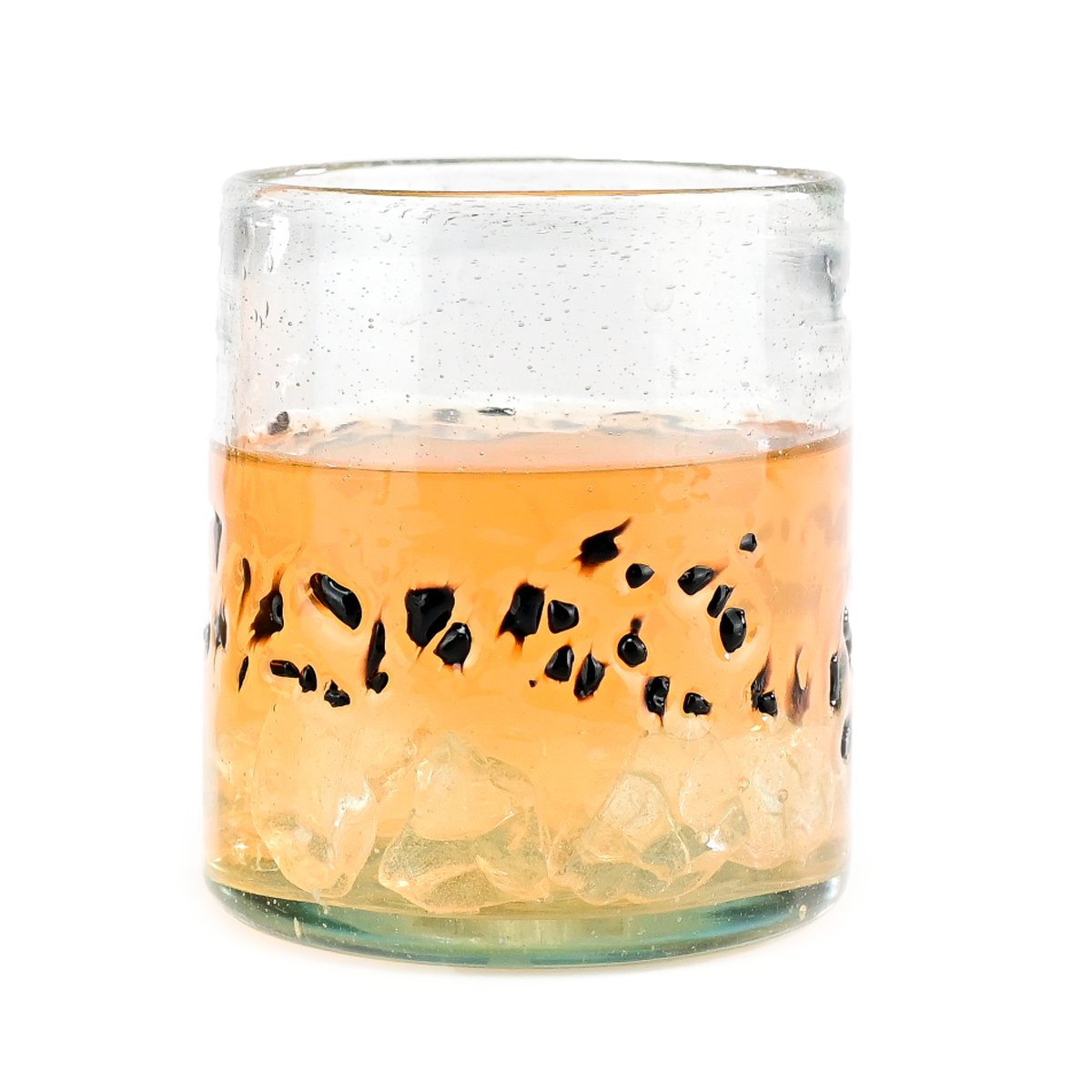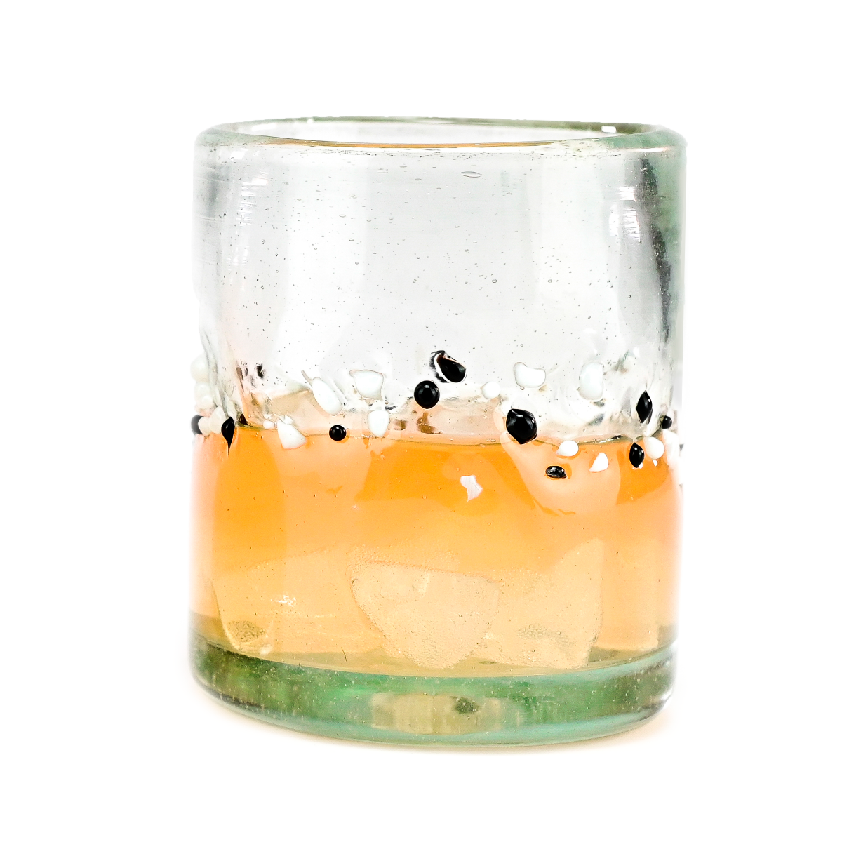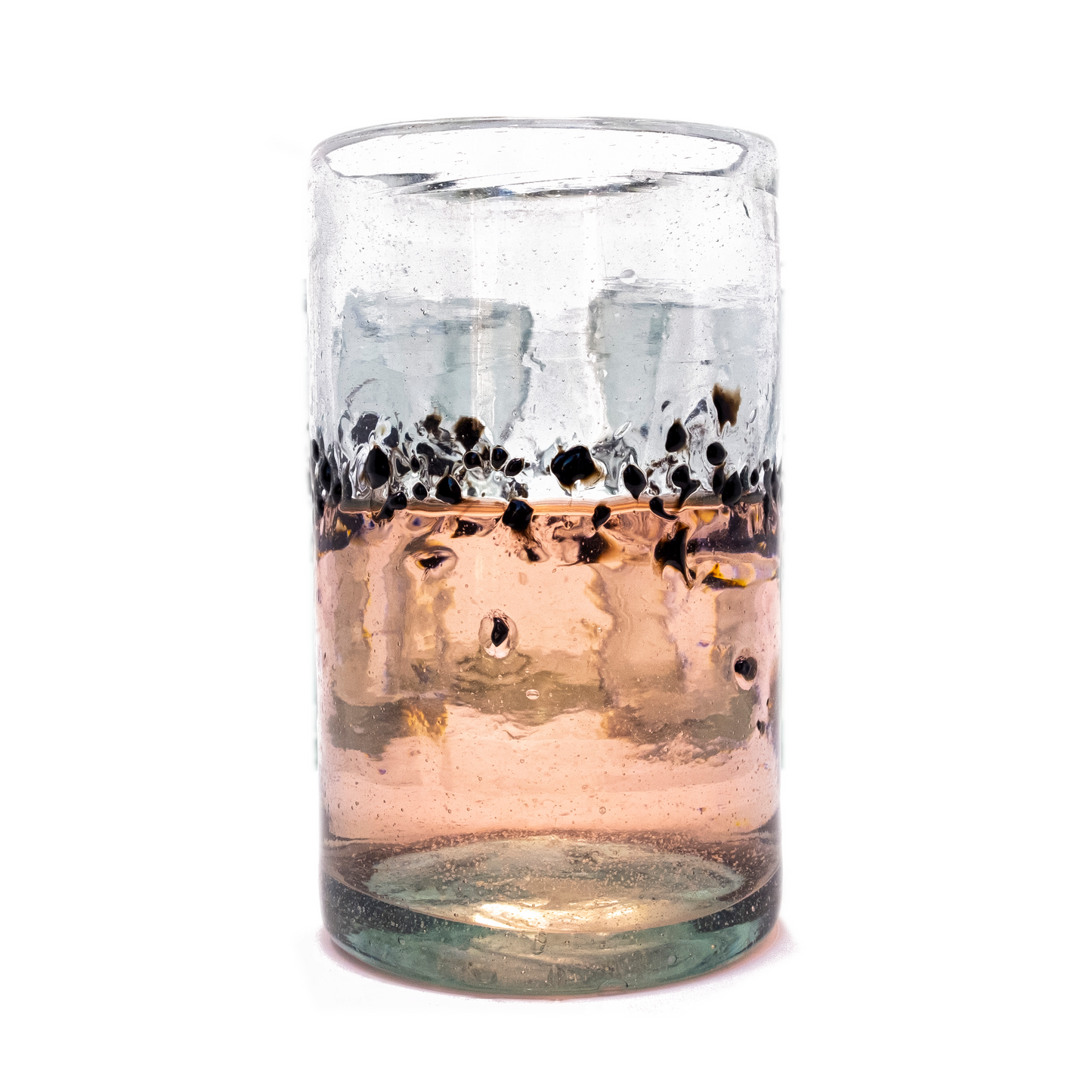 The Black and White Pebble tumbler exudes tasteful sophistication, reminiscent of a black tie affair. This set is ideal for dinner parties but also brings elegance to your everyday life. Bits of brilliant snowy white and rich midnight black are infused into the equator of the glass to create a striking visual allure and a stimulating textured feel.